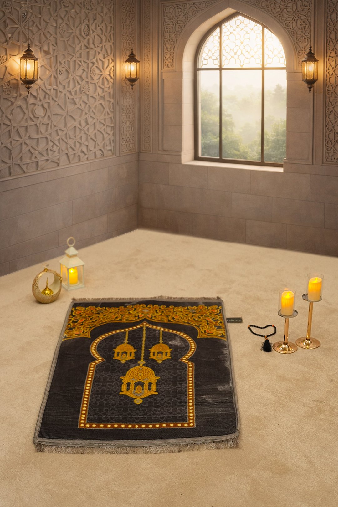 A Janamaz (also known as a prayer mat, jai namaz, or sajjadah) is a piece of fabric or rug used by Muslims to ensure a clean surface for performing their daily prayers (Salah). While not strictly required if the ground is already clean, it provides a dedicated, comfortable, and symbolic space for worship